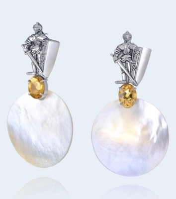 Brincos em prata, citrinos e madrepérolas, de Rose Schumacher