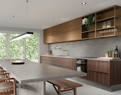 A Criare, conectada com as tendências atuais, direcionou luzes para o padrão Aurum na sua coleção Átomo, desenvolvida com a proposta de retratar o ouro em estado bruto, como ele é encontrado na natureza, incrustado na pedra dos rios, riachos e rochas. Seus veios dourados trazem brilho ao material e transmitem a sensação de bem-estar, naturalidade e imponência. A sua versatilidade possibilita que seja combinado com outras cores e produtos da marca e utilizado em diferentes projetos de ambientes planejados, tanto em frentes quanto em lineares.