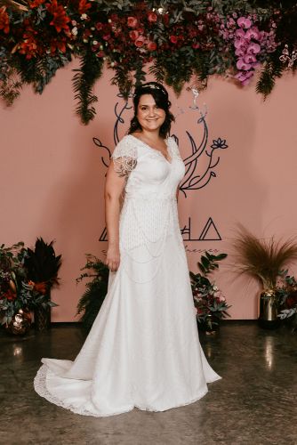 Modelo ideal para um vestido Artha? São todos os que sentem coragem de buscar os meios para realizar os seus sonhos. O do Thiago era vestir-se de noiva. Quando criança inventava modelos com as cortinas da mãe, arriscava uns pivots em uma passarela imaginária e ligava o ventilador para sentir “o vestido voando”. Compartilha com o companheiro o trabalho de maquiador e cabeleireiro e as lives que postam no Facebook recebem muitas curtidas. Resolvido sexualmente, revela que nunca quis ser uma mulher, mas é extremamente apaixonado por todo o universo feminino incluindo, é claro, o sonho de ter um vestido de noiva confeccionado especialmente para ele.
